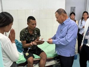 សម្តេចភក្តី សាយ ឈុំ អនុប្រធានគណបក្សប្រជាជនកម្ពុជា បានអញ្ជើញចុះសាកសួរសុខទុក្ខវីរកងទ័ពសមរភូមិមុខ មកពីទិសព្រះវិហារ និងឧត្តរមានជ័យ ចំនួន៤រូប ដែលរងរបួសដោយការវាយប្រហាររបស់កងទ័ពថៃឈ្លានពាន ដែលកំពុងសម្រាកព្យាបាលនៅមន្ទីរពេទ្យមិត្តភាពខ្មែរ-សូវៀត។